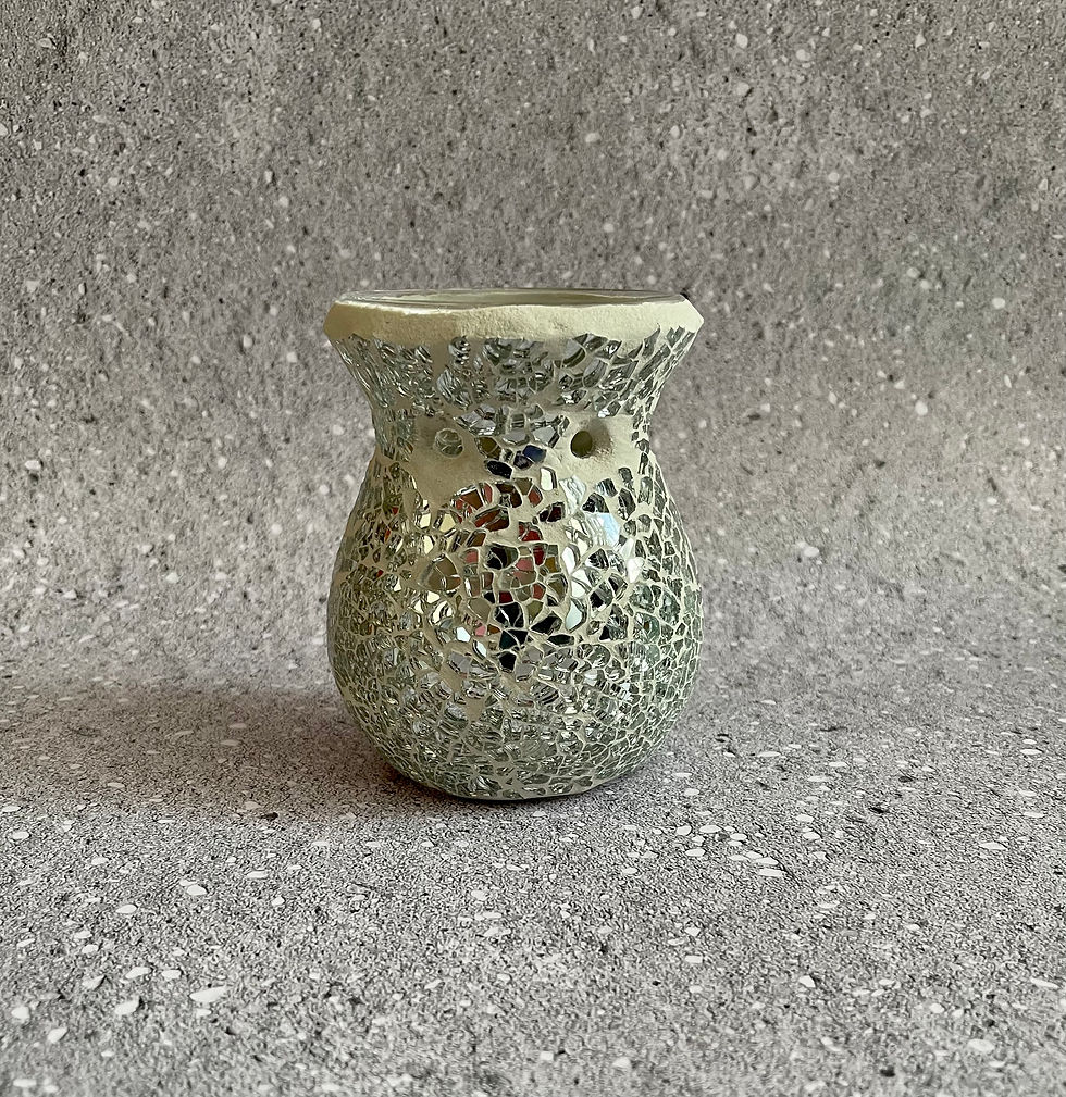 Silver Crackle Glass Wax Melt Burner & Logo Melts Gift Set